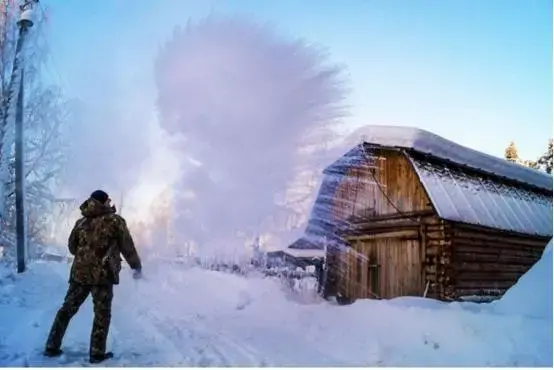 这个看似矛盾的称呼,源自村庄附近的一处温泉,这里就像是大自然开的一个玩笑,在零下70度的极寒中,这汪活水仍然流动,不会凝固。