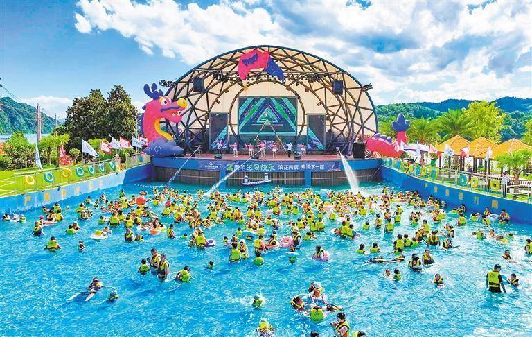 7月5日,清江奇幻水世界人头攒动。自2023年开业以来,该景点已成为当地夏季旅游的热门目的地。