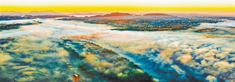 11月25日,雾霭笼罩宜都,水汽氤氲,城市楼宇若隐若现。