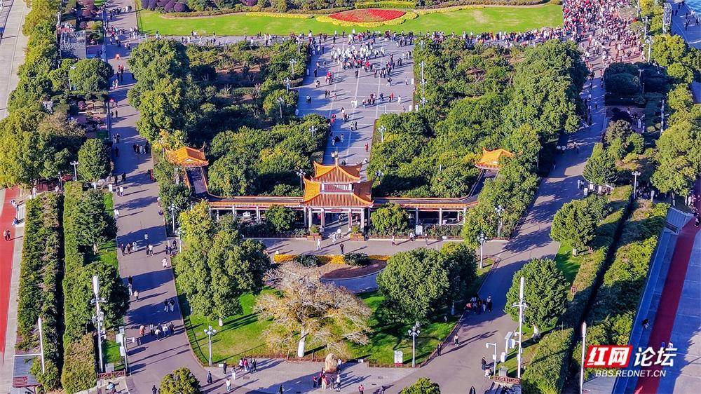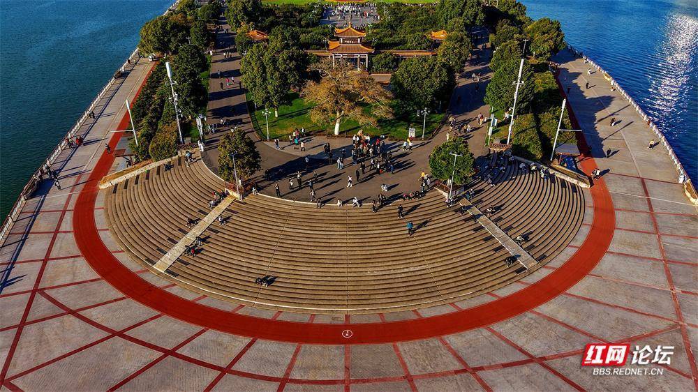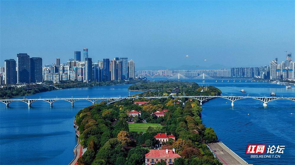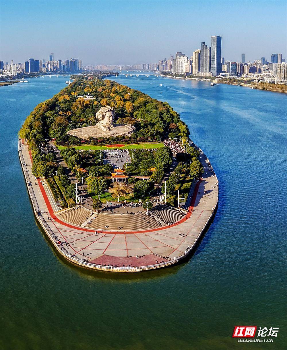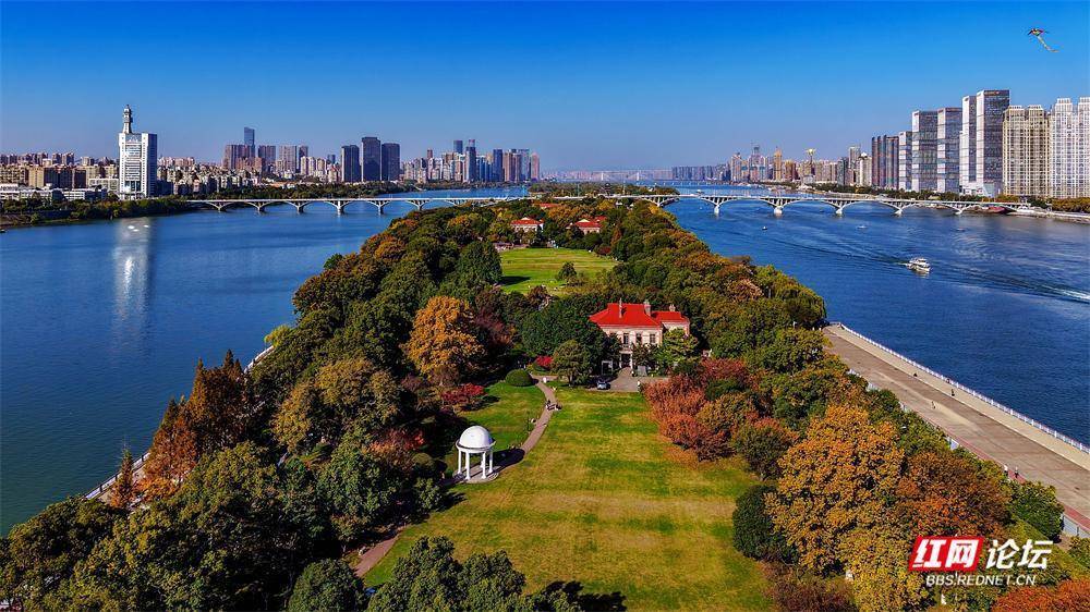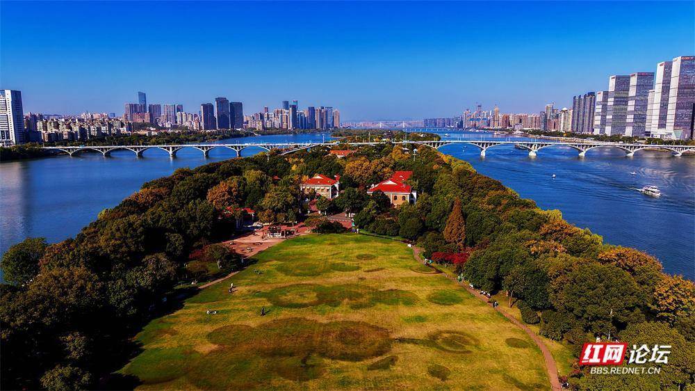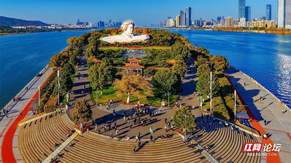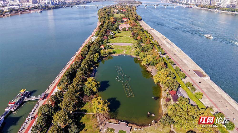 初冬的橘子洲,在航拍镜头里别具风韵。它静卧江心,霜叶与翠色交织;湘水如练,蜿蜒北去。橘子洲上,游人身影绰绰,恰似流动的色彩,为这幅清雅的山水长卷平添几分人间暖意。