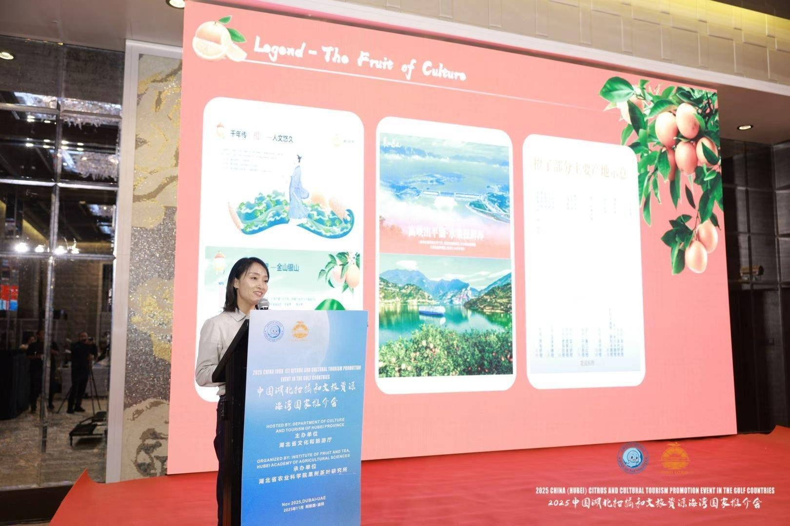 湖北日报讯(通讯员鄂文旅)11月29日,湖北柑橘暨文旅资源海湾国家推介会在阿联酋迪拜举办。本次活动由湖北省文化和旅游厅主办,湖北省农业科学院果树茶叶研究所承办。阿联酋中国文化中心、阿联酋湖北商会暨同乡会及迪拜温超超市、迪拜中百超市等迪拜重点商贸、文旅企业代表等近百人参加本次活动。